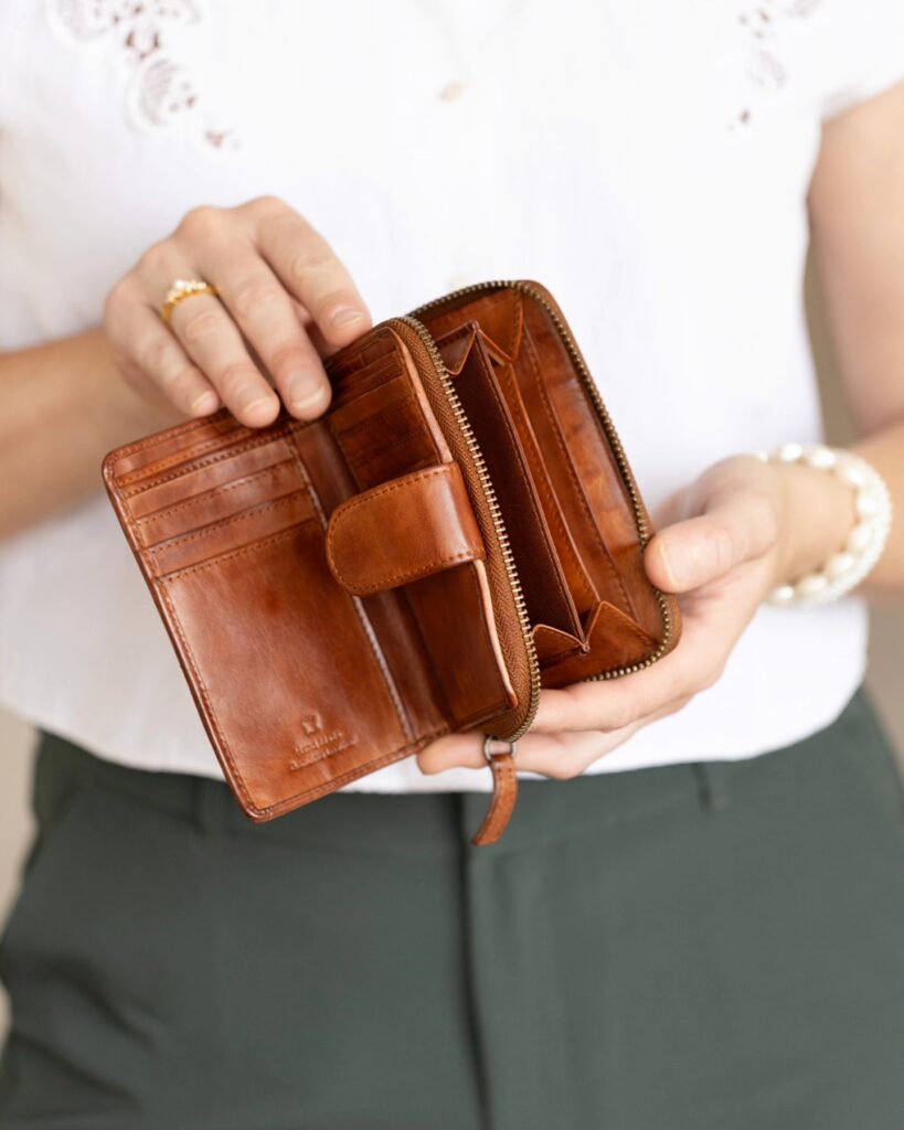 • Sacs en cuir brun ou bordeaux : parfaits pour compléter un look automnal.