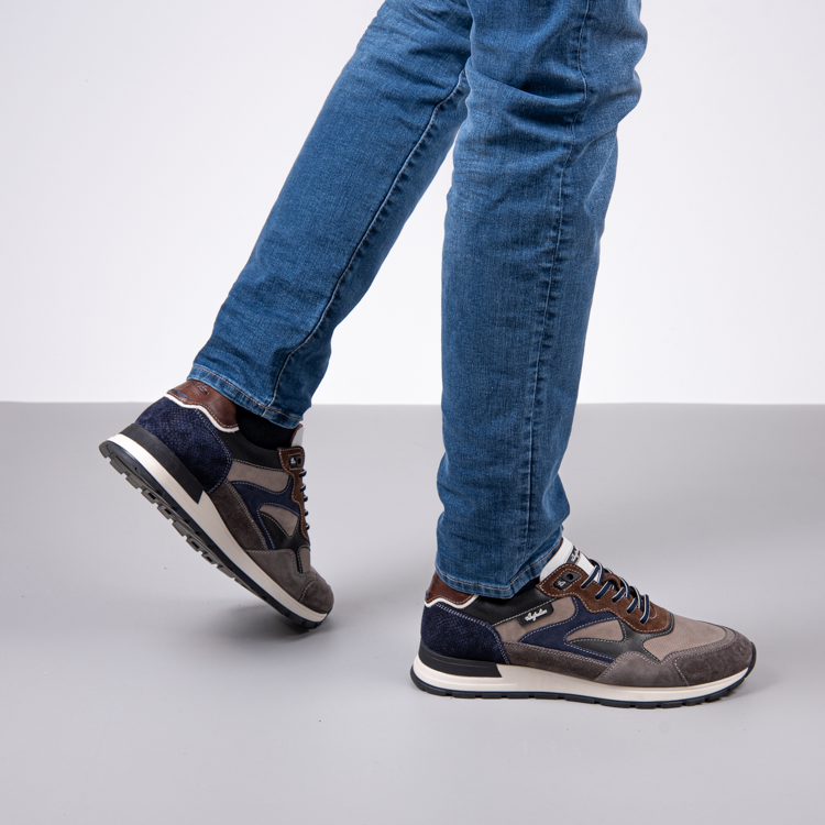 Enfin, pour un style plus décontracté, misez sur des sneakers montantes brun foncé. Associées à un chino beige et une parka kaki, elles garantissent confort et modernité, parfaites pour accompagner vos journées d’hiver tout en restant tendance.